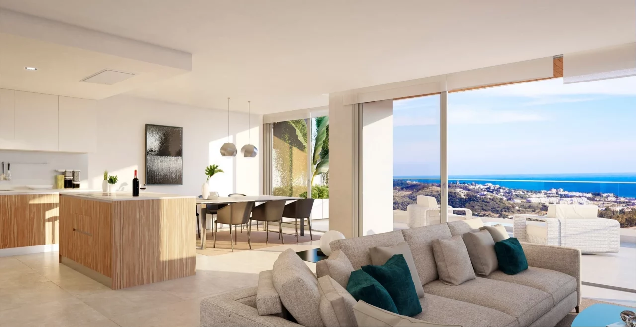 This outstanding new development is situated in one of the Costa Del Sol’s most charming towns, La Cala de Mijas. The project comprises of 77 luxury apartments that offer breath-taking views across the neighbouring golf course and the Mediterranean sea. The high-end, contemporary apartments all benefit from five-star resort-like facilities including a private gym, spa area, swimming pools, private cinema room, wine bodega, golf simulator room, gastro bar and terrace, 24-hour security and a concierge service.