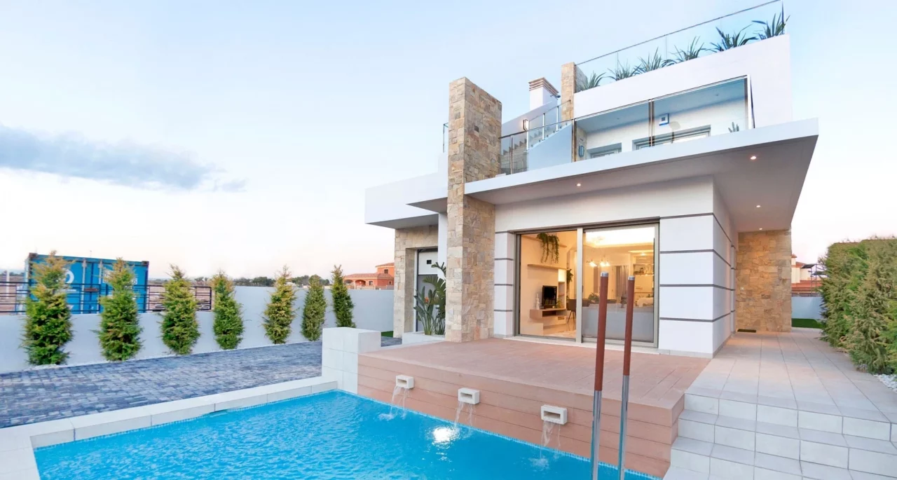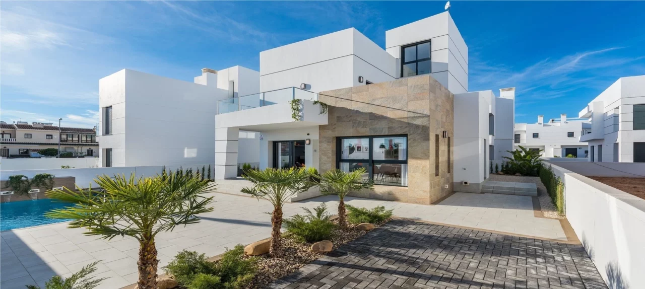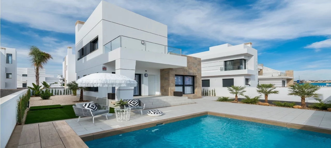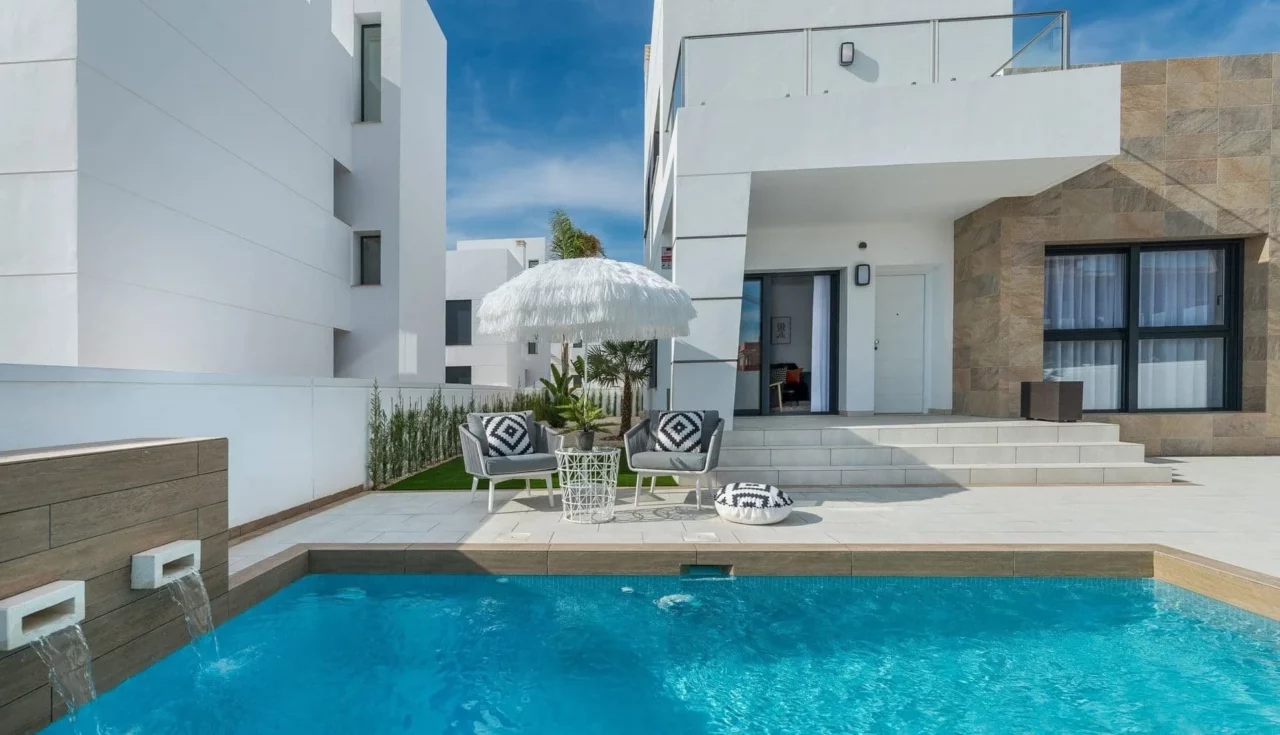 Fantastic contemporary villas situated on a brand new urbanisation in the heart of the Costa Calida, just 10 minutes from the famous Mar Menor sea and 5 minutes from the local town and amenities. Stylishly designed with white lines on the facade combined with natural stone. Each villa consist of 3 bedrooms and 3 bathrooms,, spread across two floors. The homes also have a spacious roof top solárium, as well as a spacious garden complete with its own private pool.