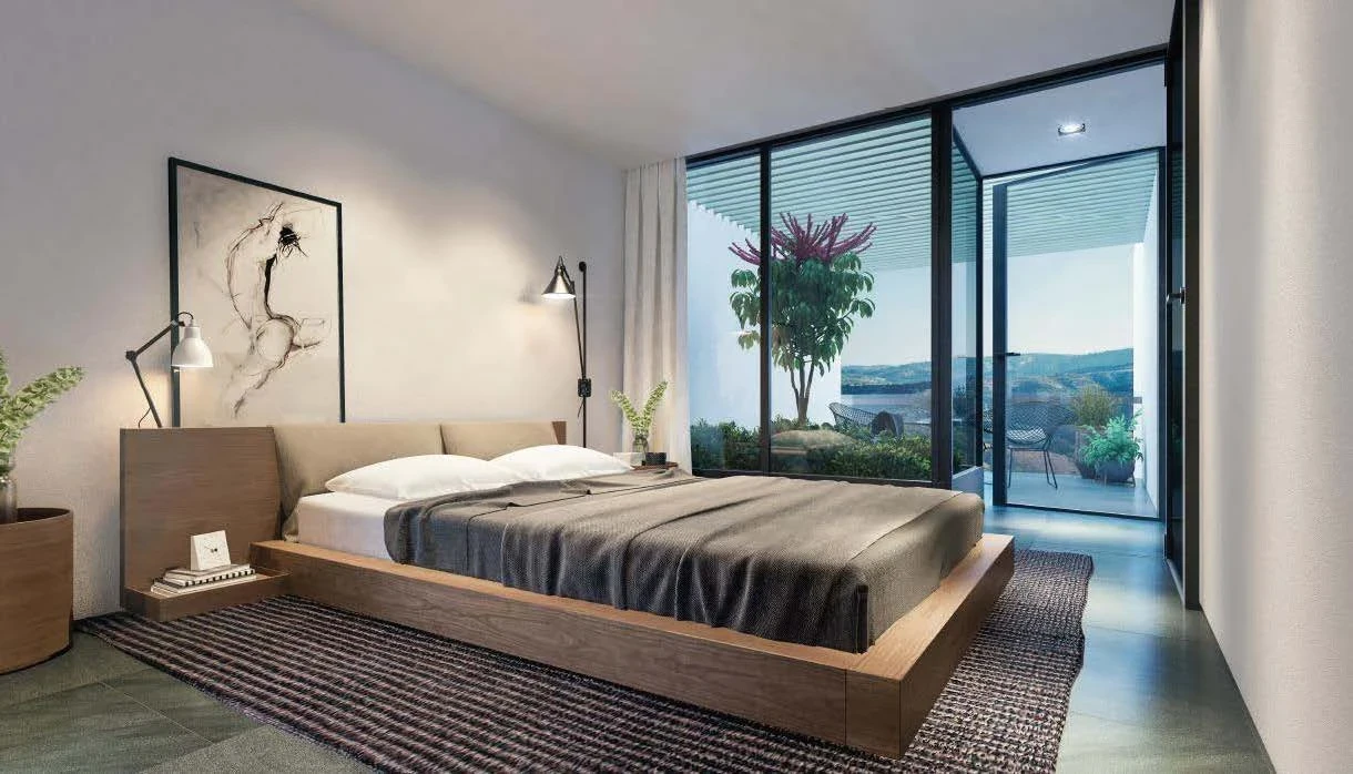 Perfectly positioned in one of the most exclusive golf resorts in Paphos, Cyprus, we have a selection of brand new two bedroom, two bathroom suites to choose from. The properties have been stylishly designed with high end fixtures and fittings throughout, creating opulent and luxurious living. These two bedroom suites offer a sanctuary of space, with the convenience of all the resort amenities moments from their doorstep. Each suite has access to the large communal swimming pool, gardens and courtyard as well as all the other on site facilities that the resort has to offer. Current facilities include a 5* club house and restaurant, a championship golf course, tennis courts and a nature trail, all of which will soon be complimented by the brand new wellness centre and charming Plateia which are soon to be constructed.