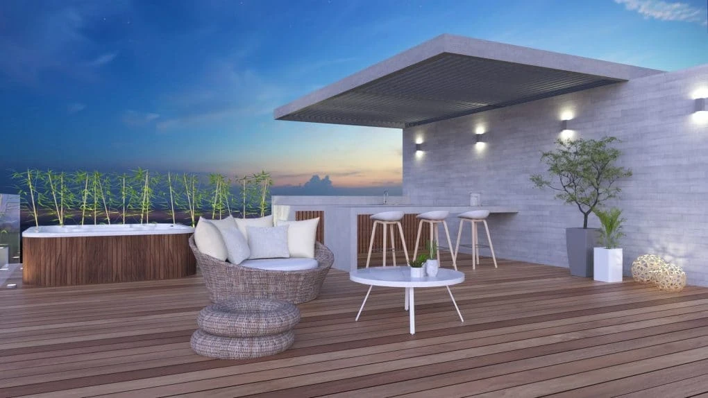 The most impressive piece of the building is the roof garden. It was carefully designed to unleash the unobstructed view of the Mediterranean sea and the sunset superior.